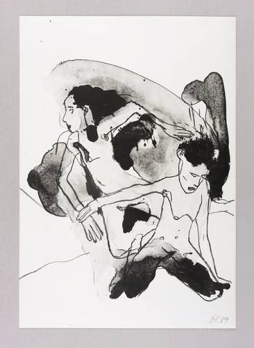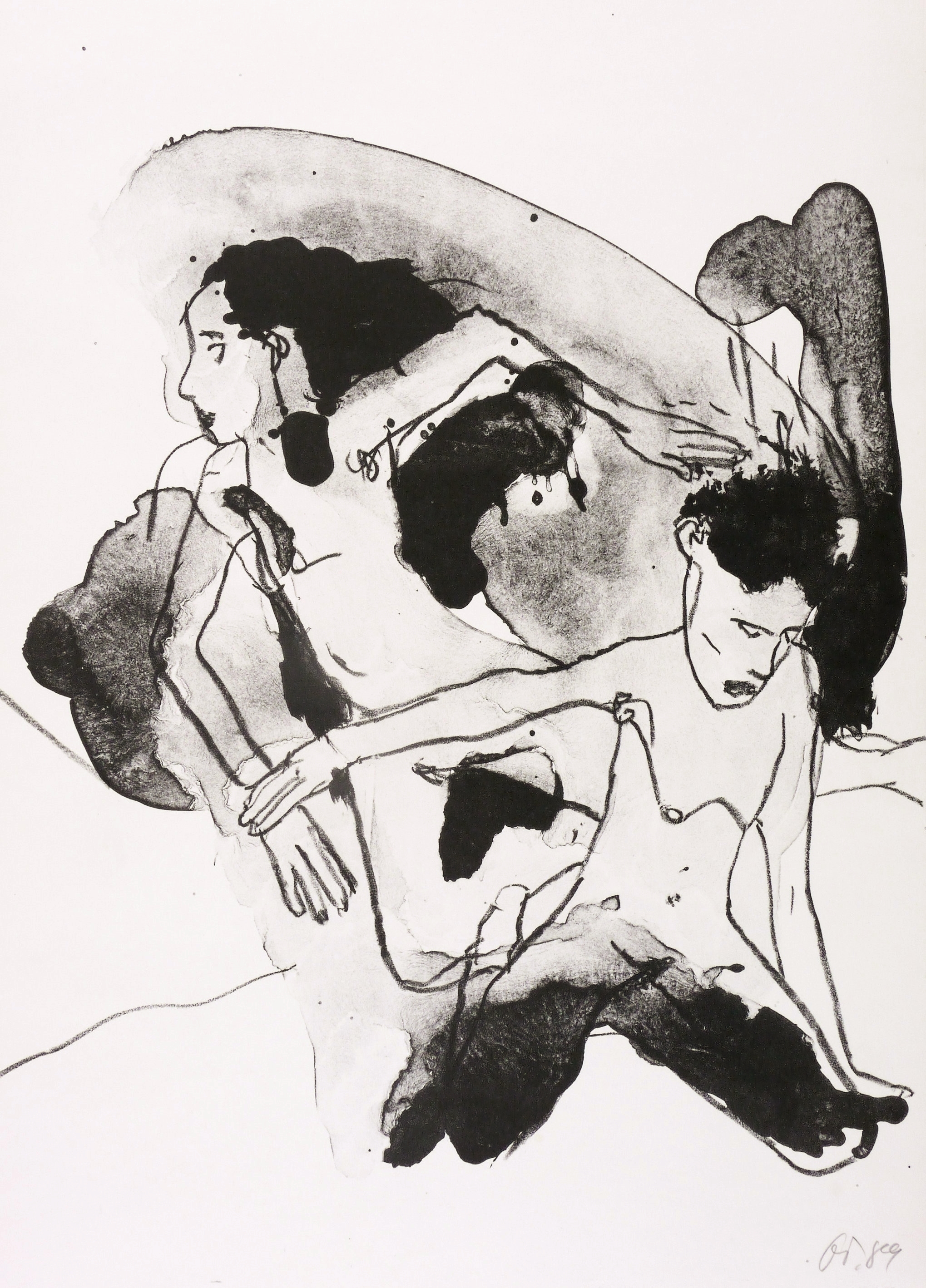 1989. Algrafie / Pinsel- & Federalgrafie, in Schwarz, auf glattem weißem Velin. – Originale Künstlergrafik, von Gudrun Trendafilov. – 42,5 x 30,3 cm (Darstellung / Blatt).