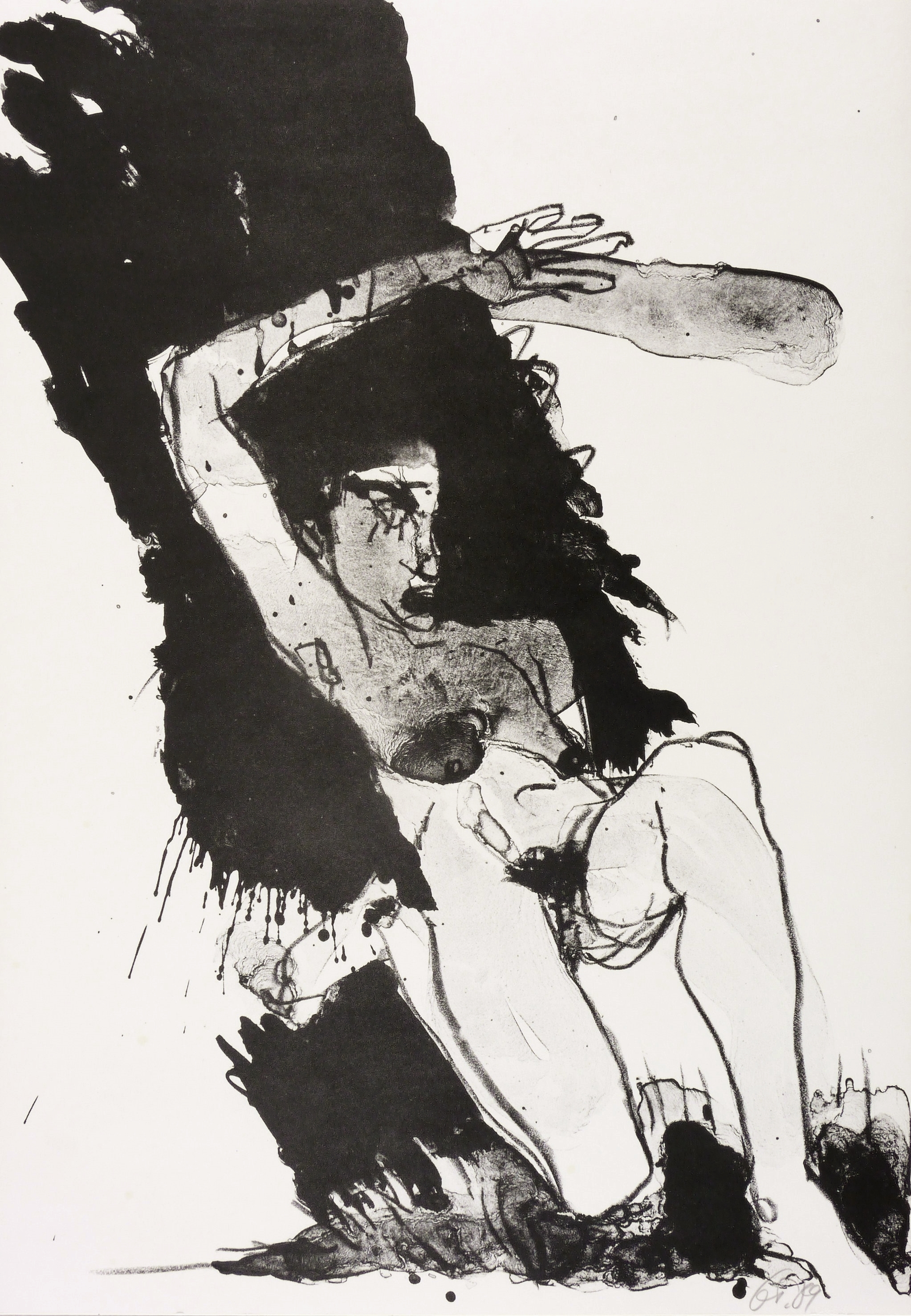 1989. Algrafie / Pinsel- & Federalgrafie, in Schwarz, auf glattem weißem Velin. – Originale Künstlergrafik, von Gudrun Trendafilov. – 43,3 x 30,2 cm (Darstellung / Blatt).