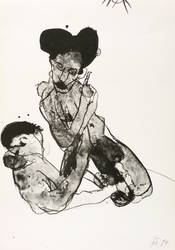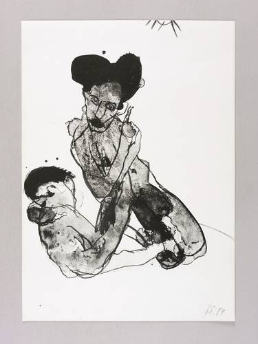 1989. Algrafie / Pinsel- & Federalgrafie, in Schwarz, auf glattem weißem Velin. – Originale Künstlergrafik, von Gudrun Trendafilov. – 42,7 x 30,2 cm (Darstellung / Blatt).