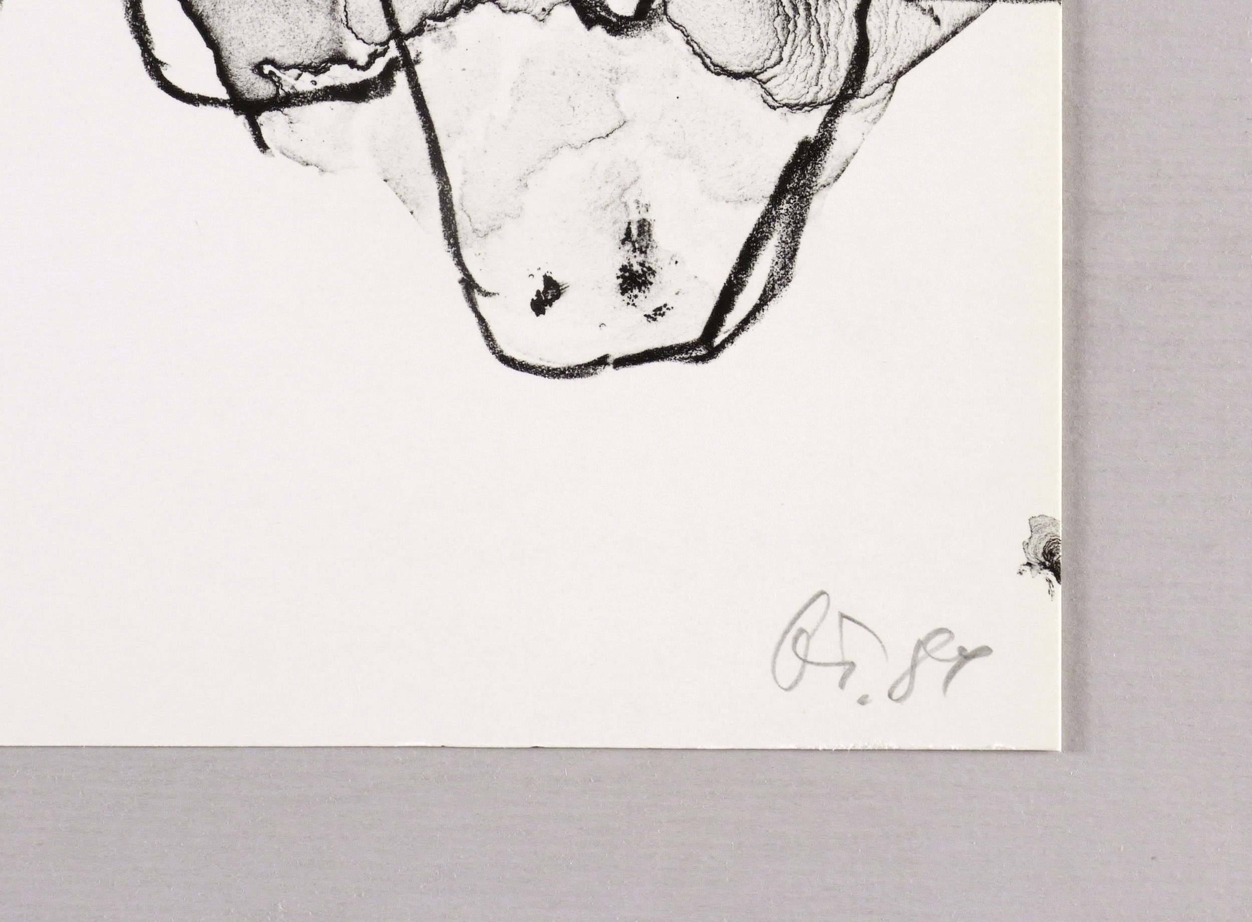 1989. Algrafie / Pinsel- & Federalgrafie, in Schwarz, auf glattem weißem Velin. – Originale Künstlergrafik, von Gudrun Trendafilov. – 43,8 x 30,3 cm (Darstellung / Blatt).