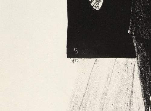 Nicht handsigniert. Rechts unten in Bleistift Auflagenbezeichnung: ″10/10″. Links in schwarzem Faserstift datiert: ″1956″. Im Stein darüber datiert und nachträglich geschwärzt: ″5.1955″. Verso von fremder Hand bezeichnet: ″hans escher″. – Provenienz: Sammlung Erhard Frommhold, Dresden. Frommhold war Cheflektor und Verlagsleiter des Verlag der Kunst in Dresden. – Tadelos erhalten. Sehr guter Zustand.