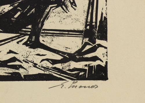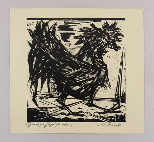 Rechts unten in Bleistift signiert : ″E.Schoner″. Unten links Titel : ″Zorniger Hahn″. Dazu bezeichnet: ″Handabzug″. – Sehr guter Zustand.