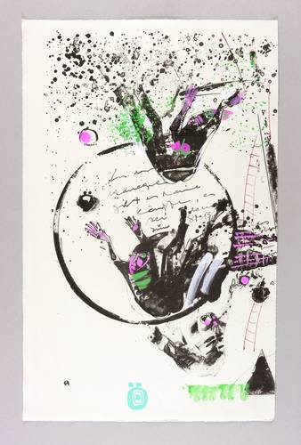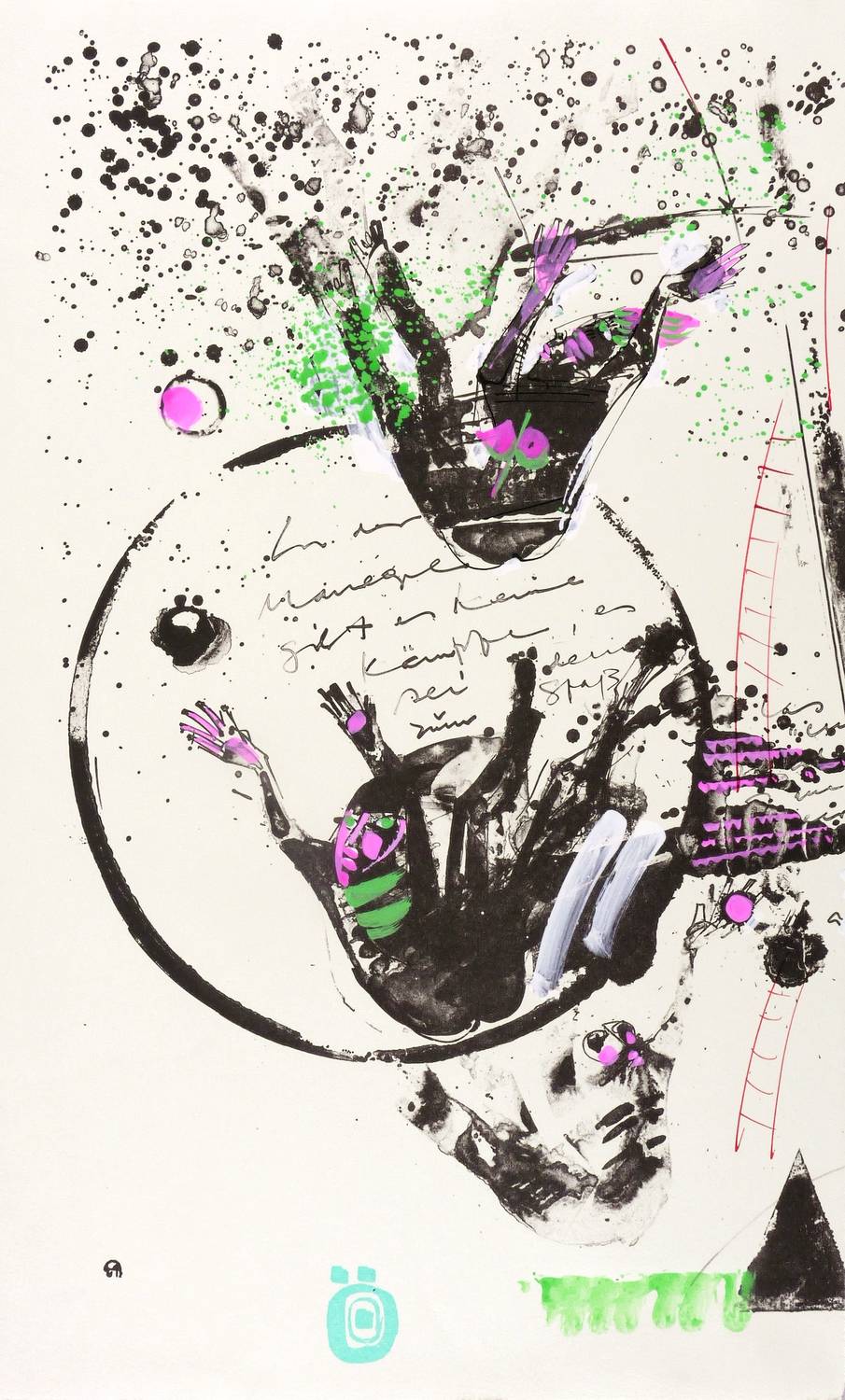 1993. Mischtechnik / Algrafie & Stencil, in Aquarell & Deckfarben koloriert, auf hellchamois Velin. – Originale Künstlergrafik, von Hernando León. – Unikat. – 60,5 x 38,5 cm (Darstellung / Blatt).