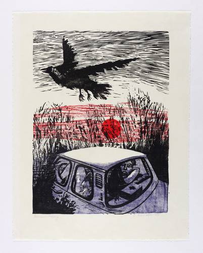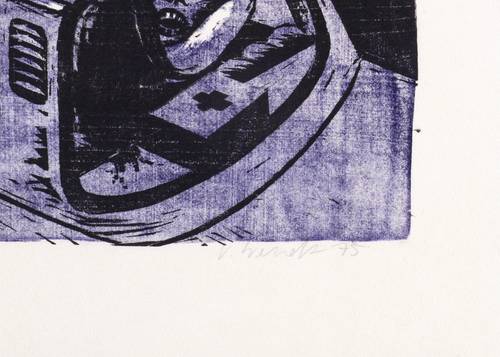 1975. Farbholzschnitt, in 3 Farben, auf leichtem hellchamois Similijapan. – Originale Künstlergrafik, von Volker Wendt. – 42,9 x 32,0 cm (Darstellung / Druckstock), 54 x 42 cm (Blatt).