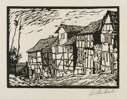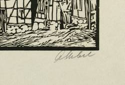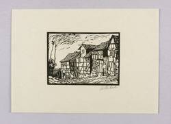Um 1930. Linolschnitt, in Schwarz, auf leichtem gelbem Velin. – Originale Künstlergrafik, von Alfred Uebel. – Unikat. – 9,5 x 13,0 cm (Darstellung / Druckstock), 19 x 27 cm (Blatt).