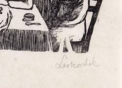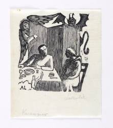 1944. Holzschnitt, in Schwarz, auf feinstem hellchamois Japan. – Originale Künstlergrafik, von Axl Leskoschek. – 11,1 x 10,0 cm (Darstellung / Druckstock), 16 x 13 cm (Blatt).