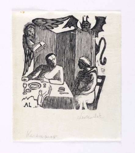 Rechts unten in Bleistift signiert: ″Leskoschek″. Links unten in der Blattecke bezeichnet: ″Karamasow″. – Provenienz: Sammlung Erhard Frommhold, Dresden. Frommhold war langjähriger Lektor, Cheflektor und Verlagsleiter des Verlag der Kunst in Dresden. Hier erschien 1961 das Buch ″Der Illustrator Axl Leskoschek″ (Dresden: Verlag der Kunst 1961) mit einer Einführung von Ina Jun-Broda. – Sehr guter Zustand.