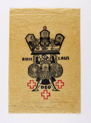 Rechts unten in Bleistift signiert: ″Axl Leskoschek″. Dazu links bezeichnet: ″Orig. Holzschn. // für Erhard!!! Unterhalb weiter: ″Schlußvignette zu den Lusiaden (Camoes)″. Im Druckstock Inschrift: ″FINIS / LAUS / DEO // 1942″. – Provenienz: Sammlung Erhard Frommhold, Dresden. Frommhold war langjähriger Lektor, Cheflektor und Verlagsleiter des Verlag der Kunst in Dresden. Hier erschien 1961 das Buch ″Der Illustrator Axl Leskoschek″ (Dresden: Verlag der Kunst 1961) mit einer Einführung von Ina Jun-Broda. – Sehr guter Zustand.