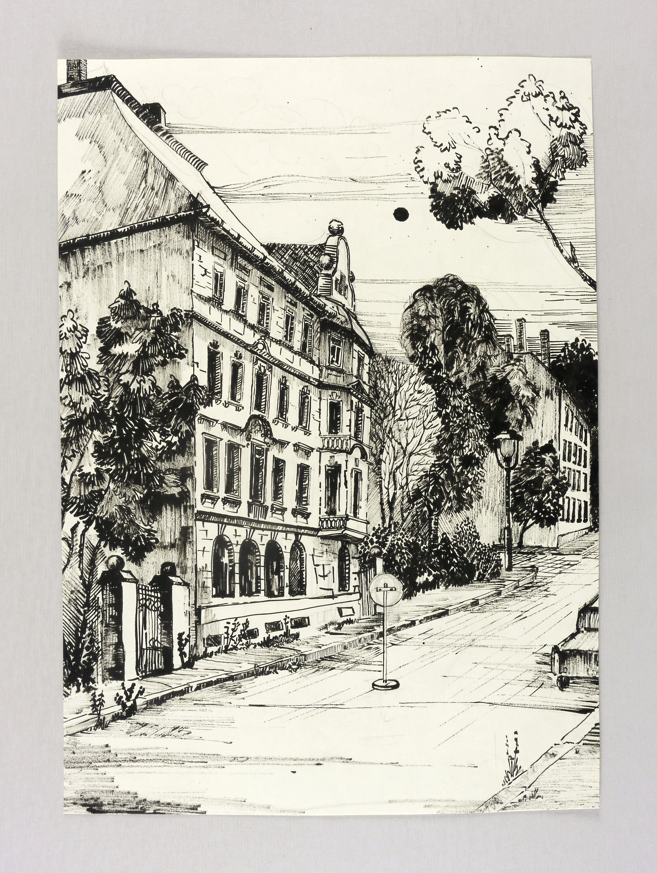 1969. Zeichnung / Faserstift, in Schwarz, auf hellchamois Velinkarton. – Originale Künstlergrafik, von Gert Söder. – Unikat. – 40,0 x 28,2 cm (Darstellung / Blatt).