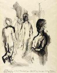 1962. Zeichnung / Feder & Pinsel, in schwarzer Tusche, auf leichtem chamois Velin. – Originale Künstlergrafik, von Georg Eisler. – Unikat. – 40,9 x 30,4 cm (Darstellung), 45 x 35 cm (Blatt).