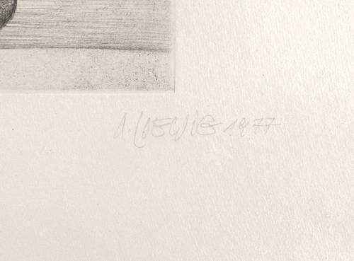 1977. Radierung / Vernis mou & Aquatinta, in Schwarz, auf feinem hellchamois Hahnemühle. – Originale Künstlergrafik, von Roger Loewig. – Auflage Exemplar Nr. 6/25. – 24,8 x 21,1 cm (Darstellung / Platte), 54 x 40 cm (Blatt).