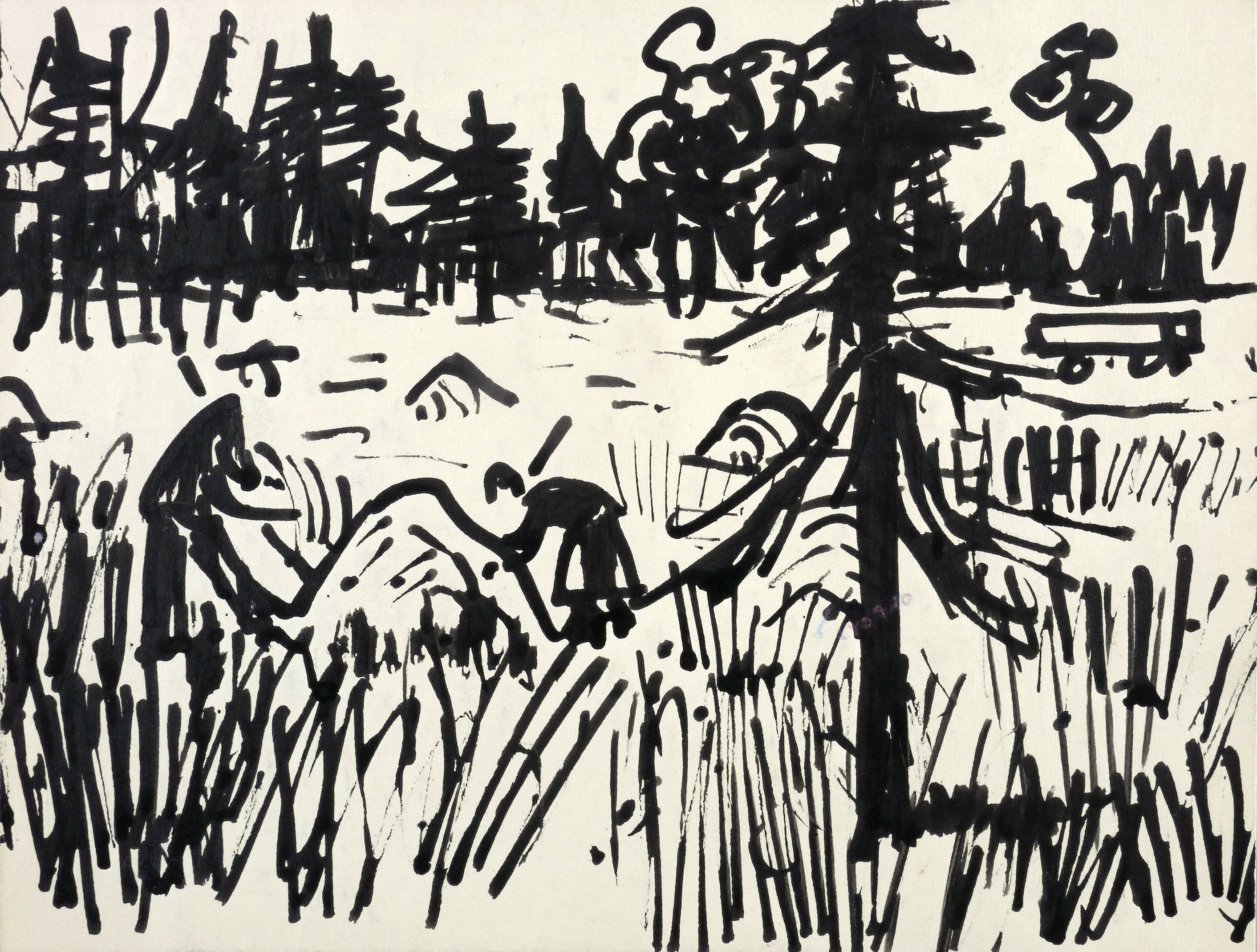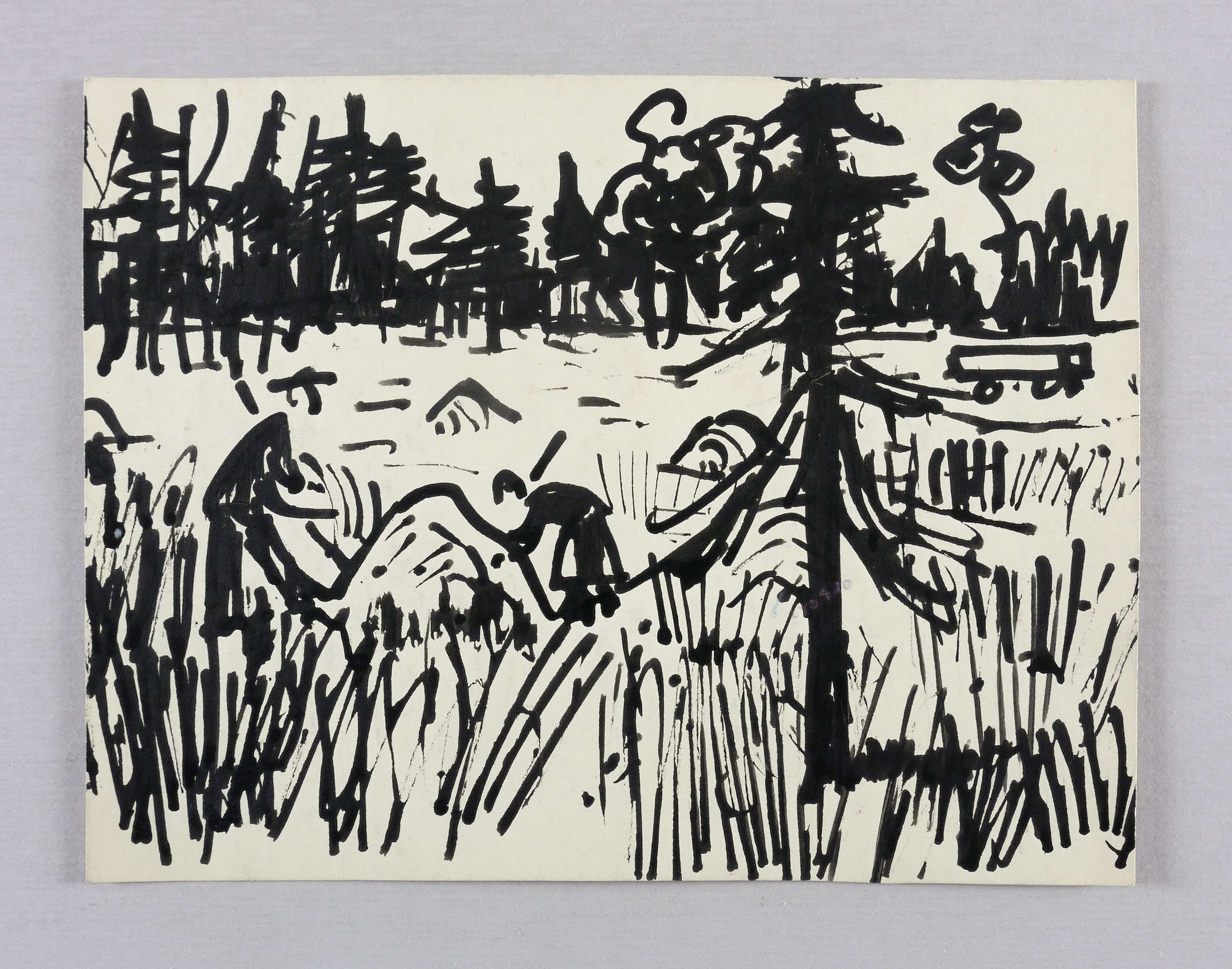 1945-1955. Zeichnung / Pinselzeichnung, in schwarzer Tusche, auf hellgelbem Velinkarton. – Originale Künstlergrafik, von Alexander Wolfgang. – Unikat. – 17,0 x 22,0 cm (Darstellung / Blatt).