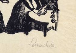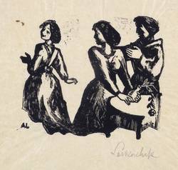 1944. Holzschnitt, in Schwarz, auf feinstem chamois Japan. – Originale Künstlergrafik, von Axl Leskoschek. – 8,4 x 9,8 cm (Darstellung / Druckstock), 16 x 19 cm (Blatt).