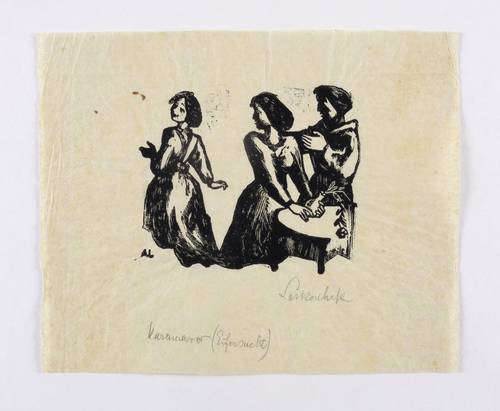 Rechts unten in Bleistift signiert: ″Leskoschek″. Unterhalb weiter bezeichnet: ″Karamasow (Eifersucht)″. – Provenienz: Sammlung Erhard Frommhold, Dresden. Frommhold war langjähriger Lektor, Cheflektor und Verlagsleiter des Verlag der Kunst in Dresden. Hier erschien 1961 das Buch ″Der Illustrator Axl Leskoschek″ (Dresden: Verlag der Kunst 1961) mit einer Einführung von Ina Jun-Broda. – Sehr guter Zustand.