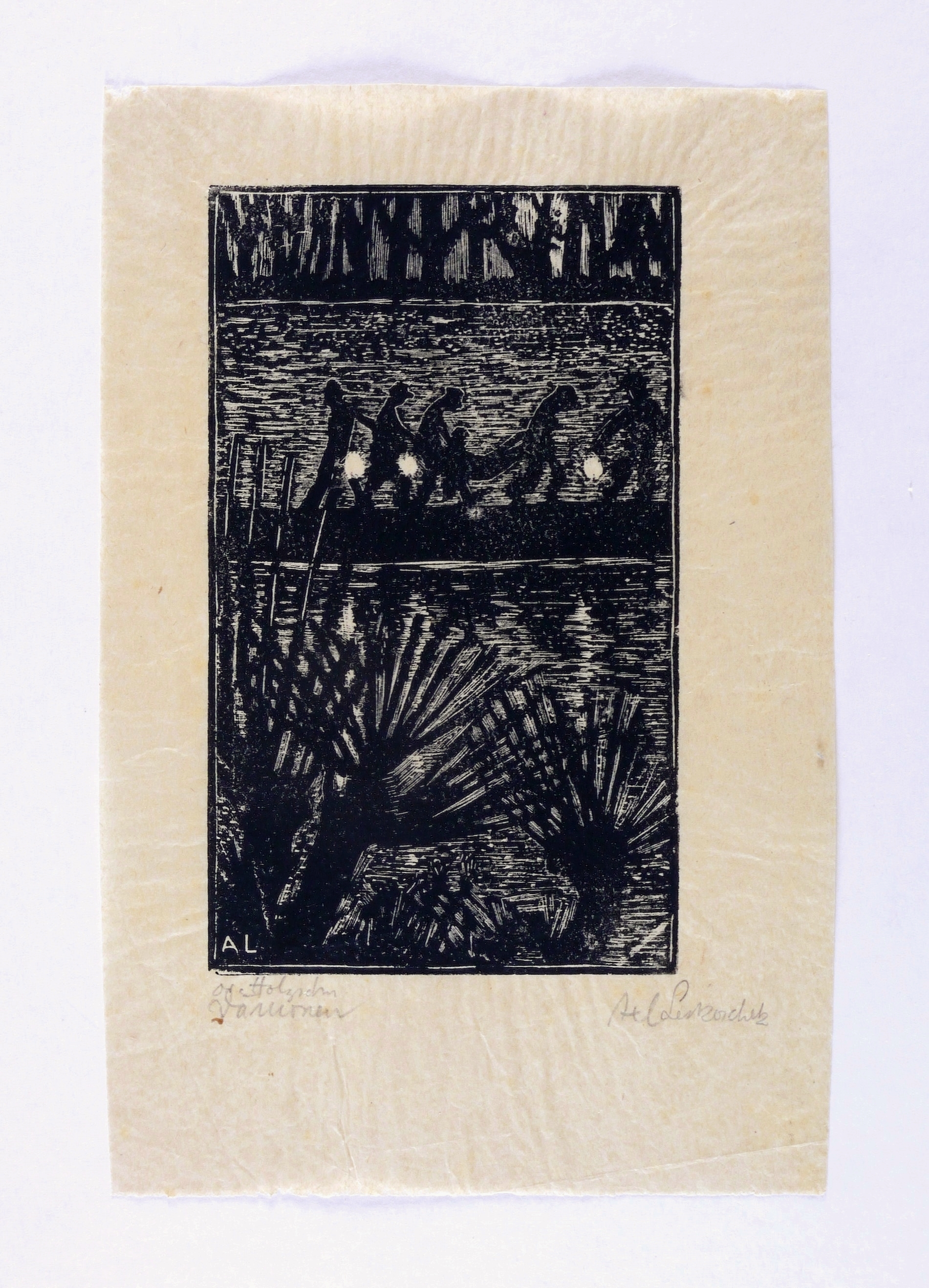 Rechts unten in Bleistift signiert: ″Axl Leskoschek″. Links weiter bezeichnet: ″Or. Holzschn. / Dämonen″. Im Druckstock links unten Monogramm: ″AL″. – Provenienz: Sammlung Erhard Frommhold, Dresden. Frommhold war langjähriger Lektor, Cheflektor und Verlagsleiter des Verlag der Kunst in Dresden. Hier erschien 1961 das Buch ″Der Illustrator Axl Leskoschek″ (Dresden: Verlag der Kunst 1961) mit einer Einführung von Ina Jun-Broda. – Sehr guter Zustand.