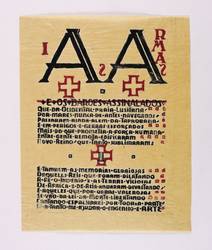 1942. Farbholzschnitt, in Schwarz & Rotbraun, auf gelbem Pergamentpapier. – Originale Künstlergrafik, von Axl Leskoschek. – 20,0 x 14,3 cm (Darstellung / Druckstock), 24 x 19 cm (Blatt).