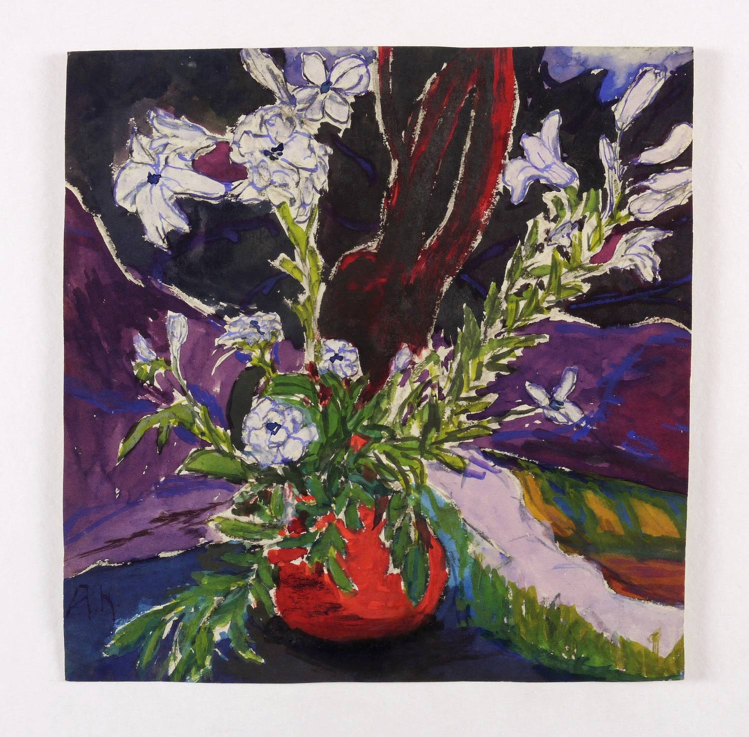 1920. Mischtechnik / Aquarell & Tusche, auf hellchamois Velinkarton. – Originale Künstlergrafik, von Adolf Kummer. – Unikat. – 22,3 x 21,8 cm (Darstellung / Blatt).