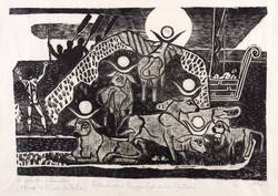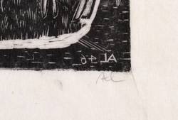 1946. Holzschnitt, in Schwarz, auf feinstem hellchamois Japan. – Originale Künstlergrafik, von Axl Leskoschek. – 18,2 x 27,4 cm (Darstellung / Druckstock), 27 x 36 cm (Blatt).