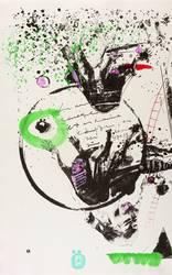 1993. Mischtechnik / Algrafie & Stencil, in Aquarell & Deckfarben koloriert, auf hellchamois Velin. – Originale Künstlergrafik, von Hernando León. – Unikat. – 60,5 x 38,5 cm (Darstellung / Blatt).