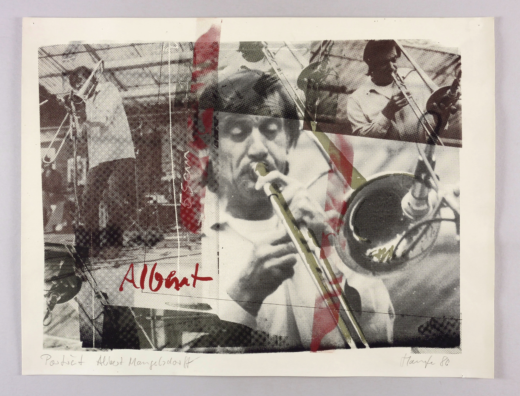 Rechts unten in Bleistift signiert und datiert: ″Haufe 80″. Links Titel: ″Porträt Albert Mangelsdorff″. – Provenienz: Sammlung Erhard Frommhold, Dresden. – Papierrand mit leichten Lagerspuren. In den Blattecken Reißzwecklöchlein. Insgesamt guter Zustand.