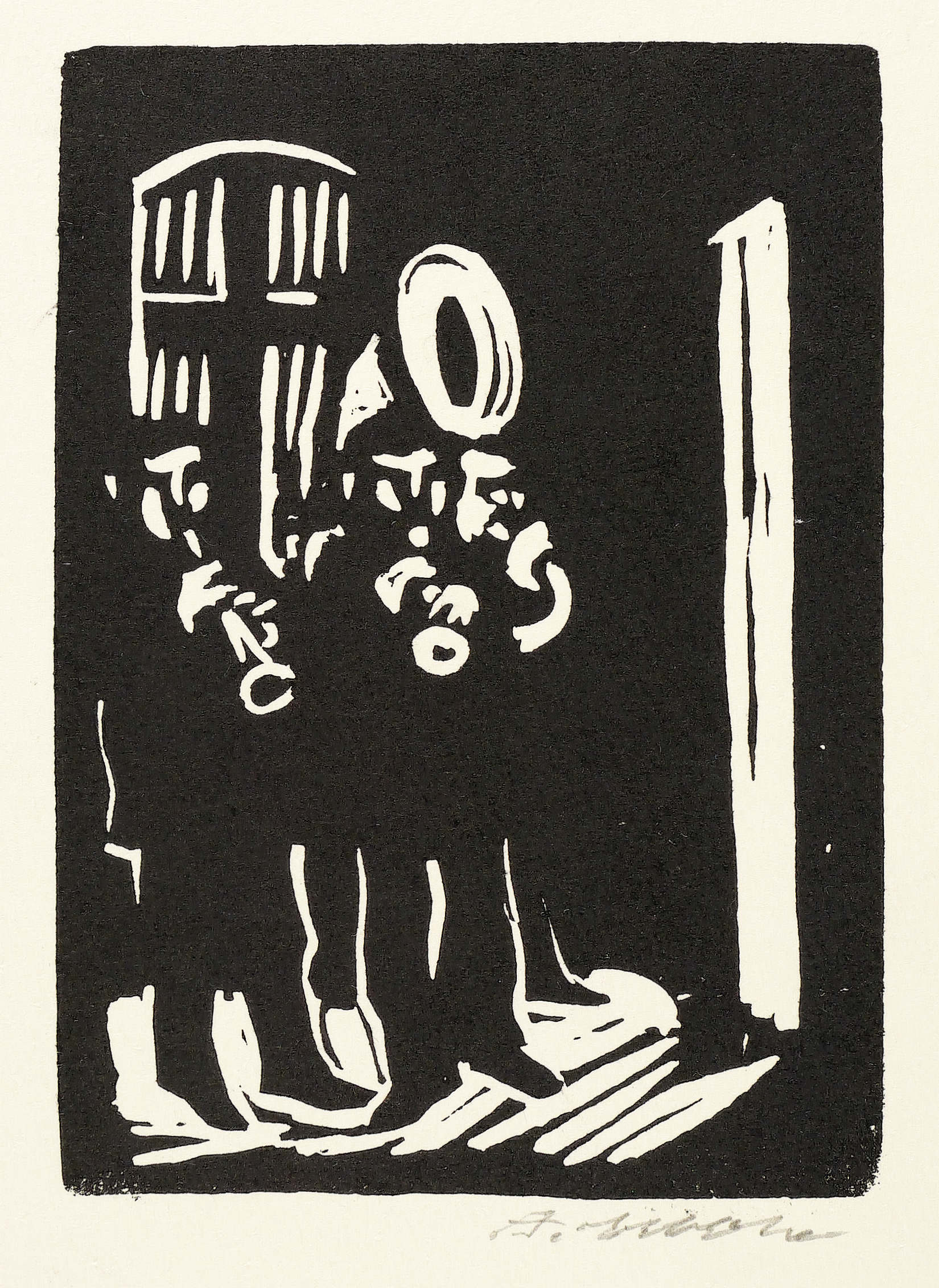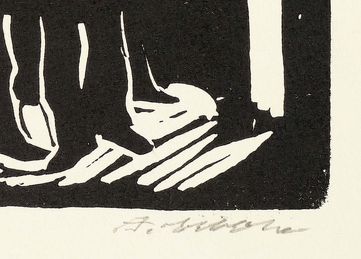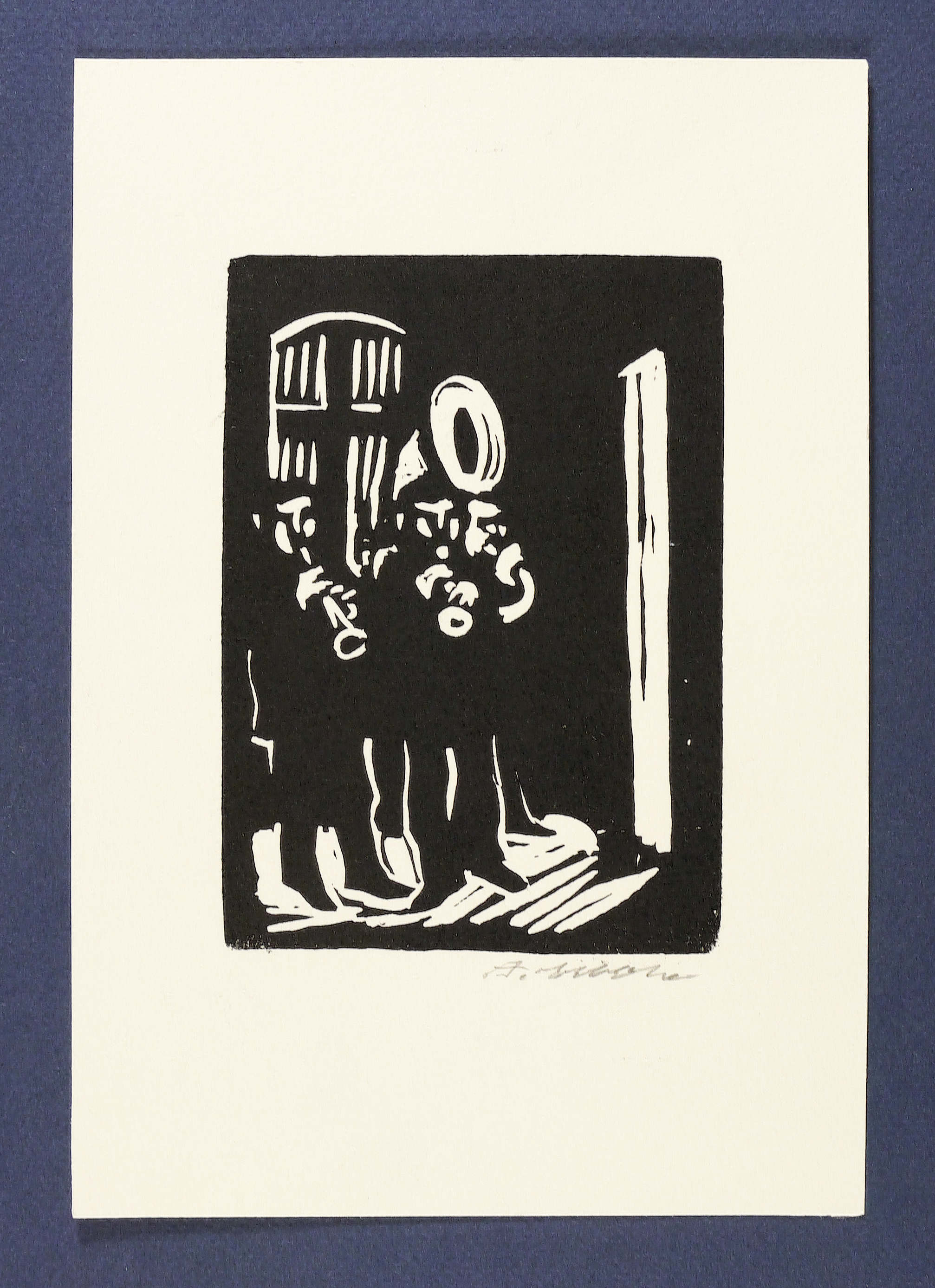 1985. Holzschnitt, in Schwarz, auf gelblichem Papier. – Originale Künstlergrafik, von Arno Mohr. – 11,7 x 8,4 cm (Darstellung), 19,5 x 13,5 cm (Blatt).