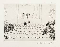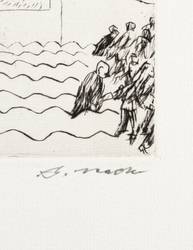 Arno Mohr (1910 Posen - 2001 Berlin). Deutscher Maler und Grafiker in Berlin. 1924-27 Lehre zum Schildermaler in Posen, später dort Geselle. 1929/30 Abendkurse an der Kunstgewerbe- und Handwerkerschule in Posen. Begann 1933/34 ein Studium an der Vereinigten Staatsschule für bildende und angewandte Kunst in Berlin-Charlottenburg. 1946-75 Professur an der Hochschule für bildende und angewandte Kunst in Berlin-Weißensee. Gründung der von ihm geleiteten Druckwerkstatt der Kunsthochschule inspiriert durch die Bekanntschaft mit dem Drucker Alfred Erhardt und Otto Dix. Richtete außerdem eine eigene Werkstatt in Berlin-Lichtenberg ein. Sammler von DDR-Grafik schätzen an ihm eine treffende Beobachtung und eine regelrecht zu einer Art Markenzeichen stilisierte sparsam skizzierende Handschrift.