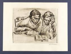 1950-1955. Radierung / Kaltnadel, in Schwarz, auf gelblichem Karton. – Originale Künstlergrafik, von Arno Mohr. – 24,8 x 31,9 cm (Darstellung / Platte), 35 x 45 cm (Blatt).