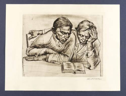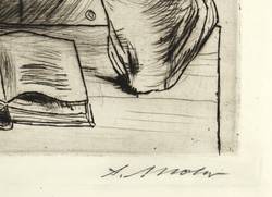 Arno Mohr (1910 Posen - 2001 Berlin). Deutscher Maler und Grafiker in Berlin. 1924-27 Lehre zum Schildermaler in Posen, später dort Geselle. 1929/30 Abendkurse an der Kunstgewerbe- und Handwerkerschule in Posen. Begann 1933/34 ein Studium an der Vereinigten Staatsschule für bildende und angewandte Kunst in Berlin-Charlottenburg. 1946-75 Professur an der Hochschule für bildende und angewandte Kunst in Berlin-Weißensee. Gründung der von ihm geleiteten Druckwerkstatt der Kunsthochschule inspiriert durch die Bekanntschaft mit dem Drucker Alfred Erhardt und Otto Dix. Richtete außerdem eine eigene Werkstatt in Berlin-Lichtenberg ein. Sammler von DDR-Grafik schätzen an ihm eine treffende Beobachtung und eine regelrecht zu einer Art Markenzeichen stilisierte sparsam skizzierende Handschrift.