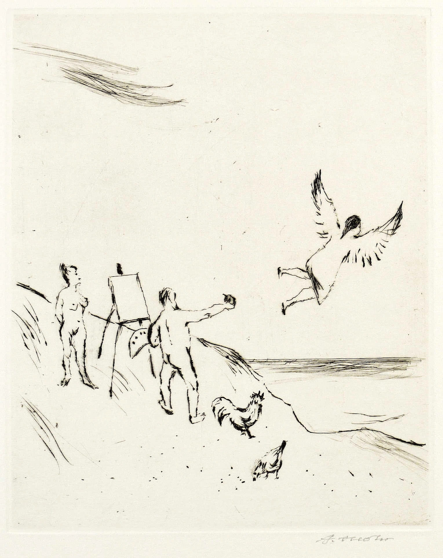 1965. Radierung / Kaltnadel, in Schwarz, auf schwerem hellchamois Bütten. – Originale Künstlergrafik, von Arno Mohr. – 30,8 x 24,9 cm (Darstellung / Platte), 45 x 54 cm (Blatt).