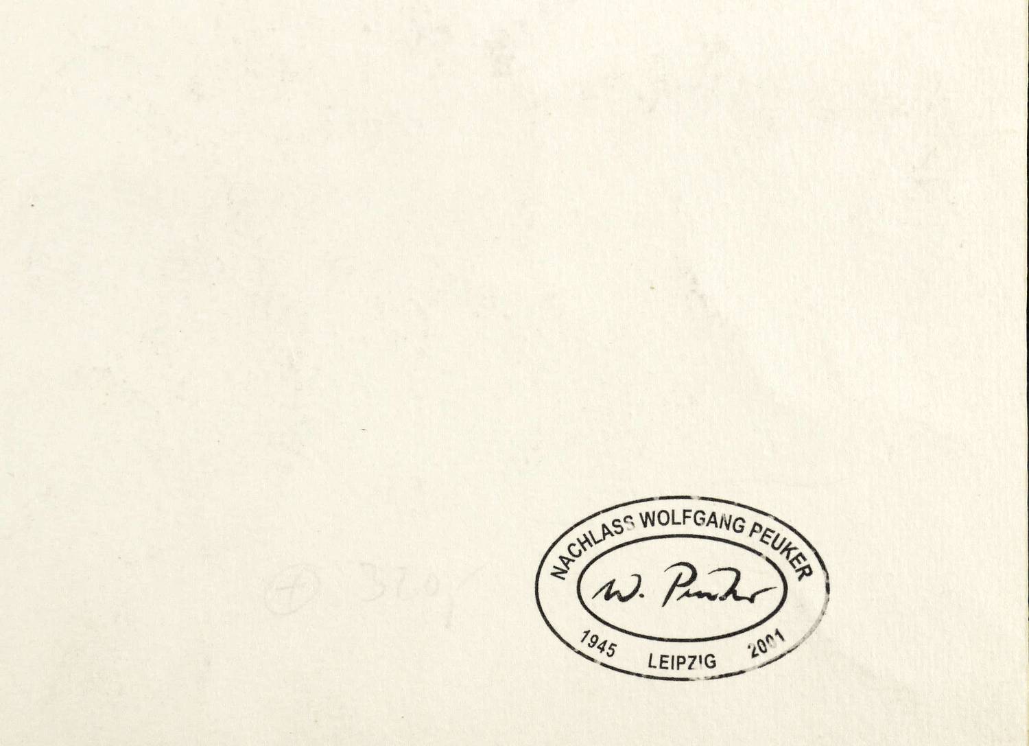 Wolfgang Peuker (1945 Aussig - 2001 Groß Glienicke). Deutscher Maler und Grafiker der Leipziger Schule. 1963-65 Ausbildung zum Offsetdrucker. 1965-70 Studium an der Hochschule für Grafik und Buchkunst Leipzig (HGB) bei Werner Tübke, Bernhard Heisig und Wolfgang Mattheuer. Danach freischaffend in Leipzig und Zwickau. 1975 Käthe-Kollwitz-Preis. 1977-89 Lehrtätigkeit an der Hochschule für Grafik und Buchkunst in Leipzig. 1983 Kunstpreis der Stadt Leipzig. 1984 Teilnahme an der Biennale in Venedig, Kunstpreis der DDR. 1990 Berufung an die Kunsthochschule Berlin-Weißensee, 1993 Professur ebenda.