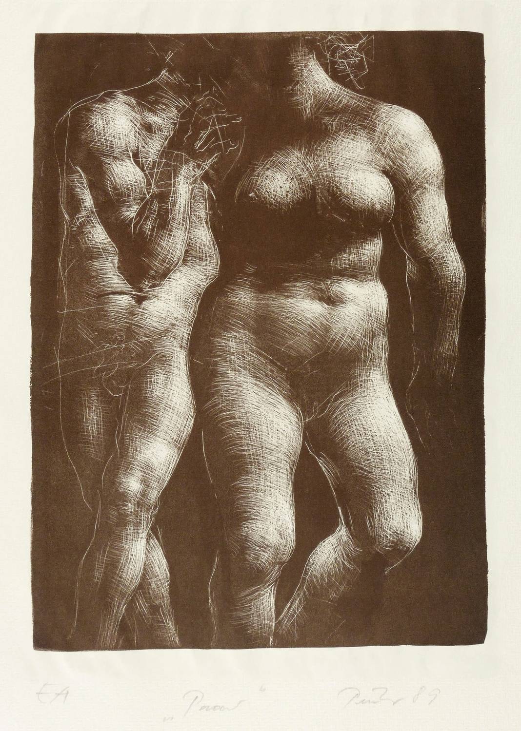 Rechts unten in Bleistift signiert und datiert: ″Peuker 1986″. Links Auflagenbezeichnung: ″EA″. Mittig Titel: ″Paar″. – Blattrand mit minimalen Lagerspuren. Sonst sehr guter Zustand.
