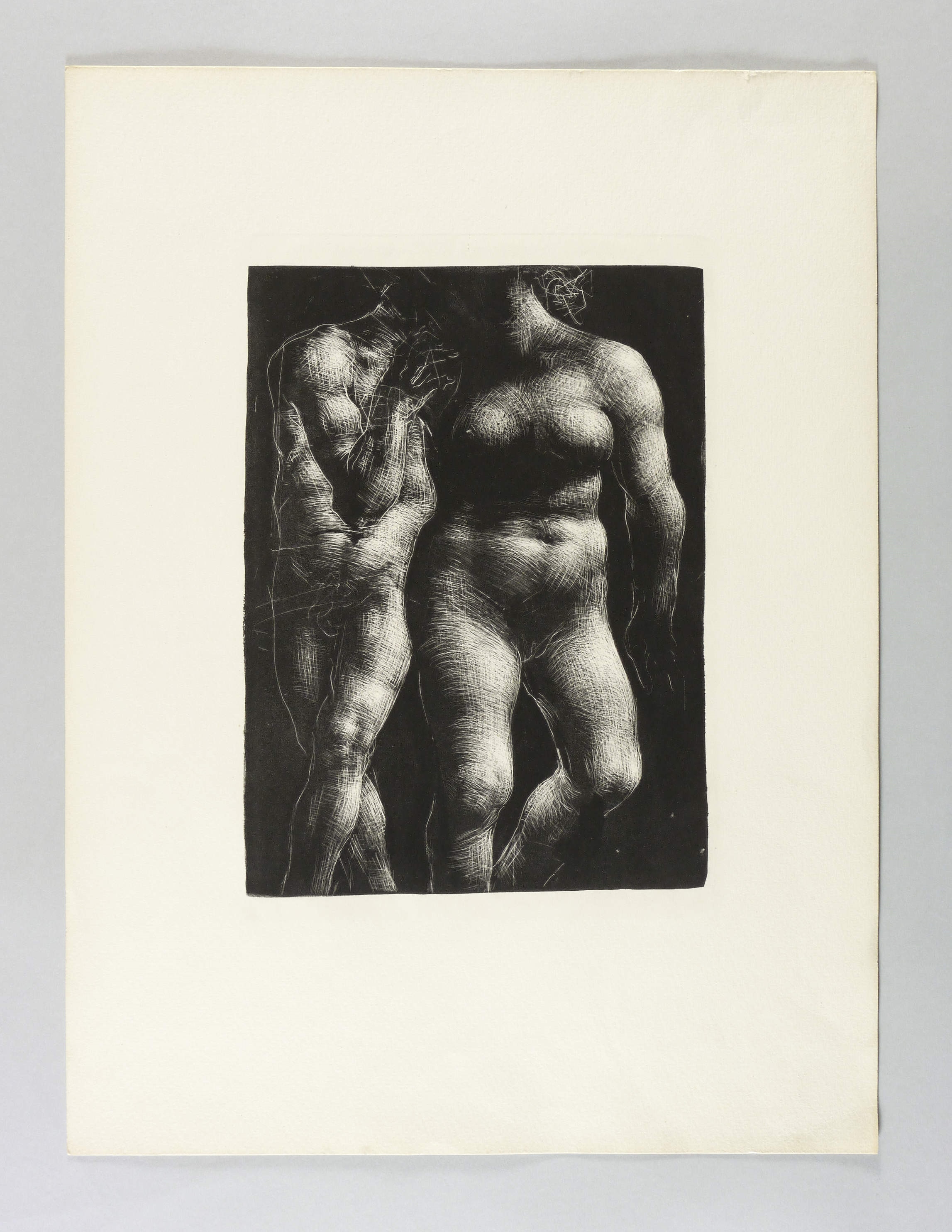 1986. Lithografie / Schablithografie, in Schwarz, auf gelblichem Karton. – Originale Künstlergrafik, von Wolfgang Peuker. – 29,1 x 20,8 cm (Darstellung / Druckbild), 31,5 x 23,0 cm (Stein), 51 x 38 cm (Blatt).