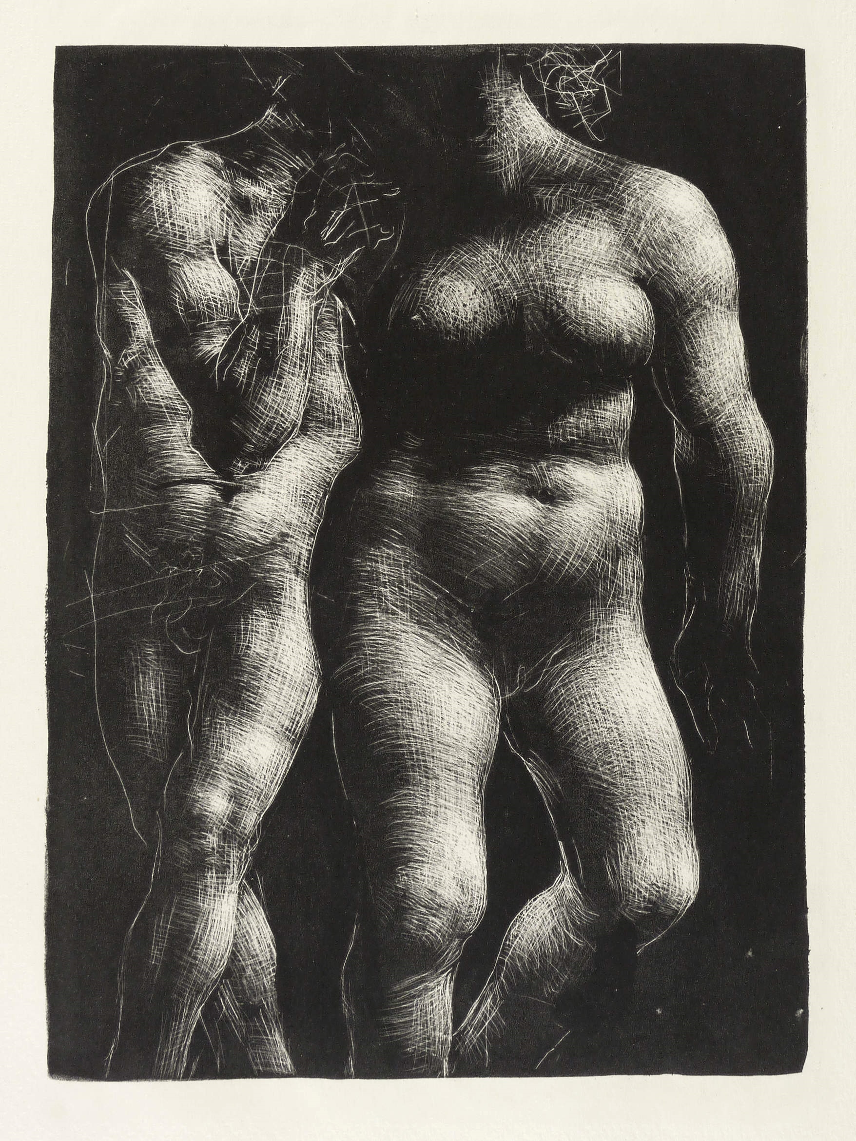 Wolfgang Peuker (1945 Aussig - 2001 Groß Glienicke). Deutscher Maler und Grafiker der Leipziger Schule. 1963-65 Ausbildung zum Offsetdrucker. 1965-70 Studium an der Hochschule für Grafik und Buchkunst Leipzig (HGB) bei Werner Tübke, Bernhard Heisig und Wolfgang Mattheuer. Danach freischaffend in Leipzig und Zwickau. 1975 Käthe-Kollwitz-Preis. 1977-89 Lehrtätigkeit an der Hochschule für Grafik und Buchkunst in Leipzig. 1983 Kunstpreis der Stadt Leipzig. 1984 Teilnahme an der Biennale in Venedig, Kunstpreis der DDR. 1990 Berufung an die Kunsthochschule Berlin-Weißensee, 1993 Professur ebenda.