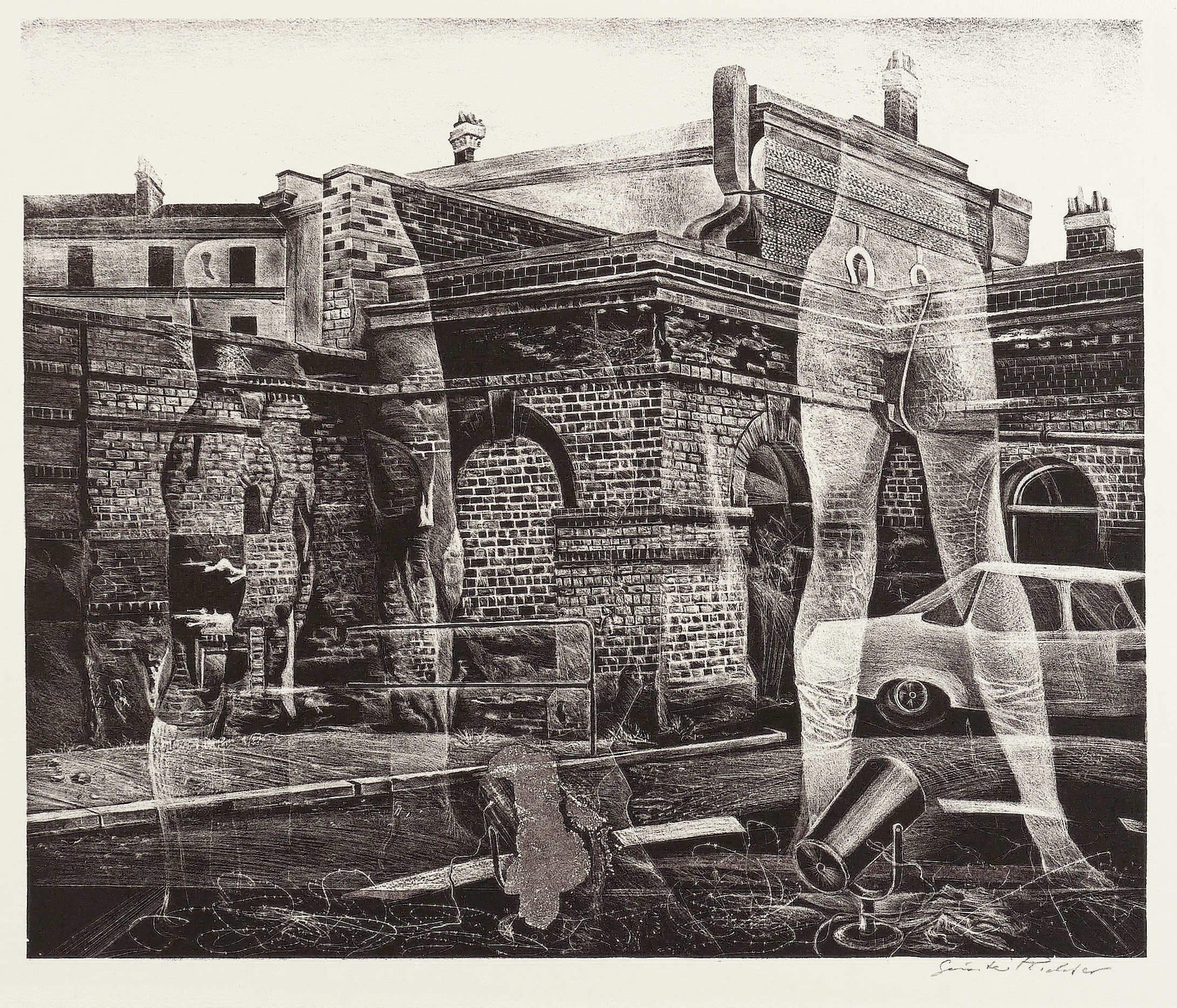 1978. Zinkografie / Kreidezinkografie, in Schwarz, auf Torchon-Maschinenbütten. – Originale Künstlergrafik, von Günter Richter. – Auflage 100 Exemplare. – 28,1 x 37,0 cm (Darstellung / Druckbild), 60 x 42 cm (Blatt).