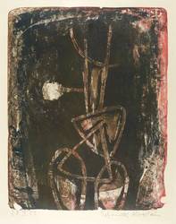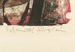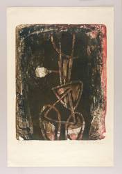 1956. Farbmonotypie, in Hellrot, Braun & Schwarz, auf glattem hellgelbem Velin. – Originale Künstlergrafik, von Helmut Schmidt-Kirstein. – Unikat. – 54,2 x 42,5 cm (Darstellung / Druckbild), 74 x 50 cm (Blatt).