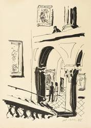 Arno Mohr (1910 Posen - 2001 Berlin). Deutscher Maler und Grafiker in Berlin. 1924-27 Lehre zum Schildermaler in Posen, später dort Geselle. 1929/30 Abendkurse an der Kunstgewerbe- und Handwerkerschule in Posen. Begann 1933/34 ein Studium an der Vereinigten Staatsschule für bildende und angewandte Kunst in Berlin-Charlottenburg. 1946-75 Professur an der Hochschule für bildende und angewandte Kunst in Berlin-Weißensee. Gründung der von ihm geleiteten Druckwerkstatt der Kunsthochschule inspiriert durch die Bekanntschaft mit dem Drucker Alfred Erhardt und Otto Dix. Richtete außerdem eine eigene Werkstatt in Berlin-Lichtenberg ein. Sammler von DDR-Grafik schätzen an ihm eine treffende Beobachtung und eine regelrecht zu einer Art Markenzeichen stilisierte sparsam skizzierende Handschrift.