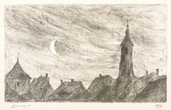 Lewinger, Ernst. – „Dachlandschaft mit Mondsichel”.