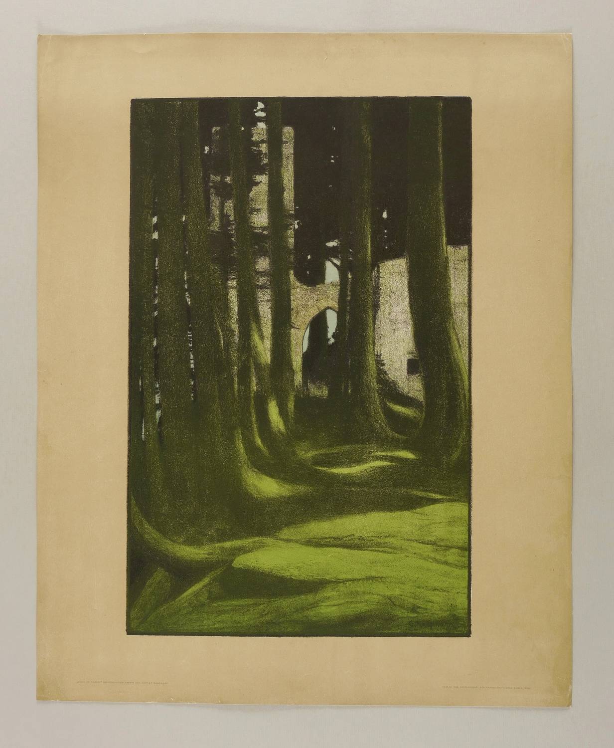 1900. Farblithografie / Kreide- & Pinsellithografie, in 5 Farben, auf braun getöntem Karton. – Originale Künstlergrafik, von Gustav Kampmann. – 45,2 x 28,9 cm (Darstellung / Einfassungslinie), 56 x 45 cm (Blatt).