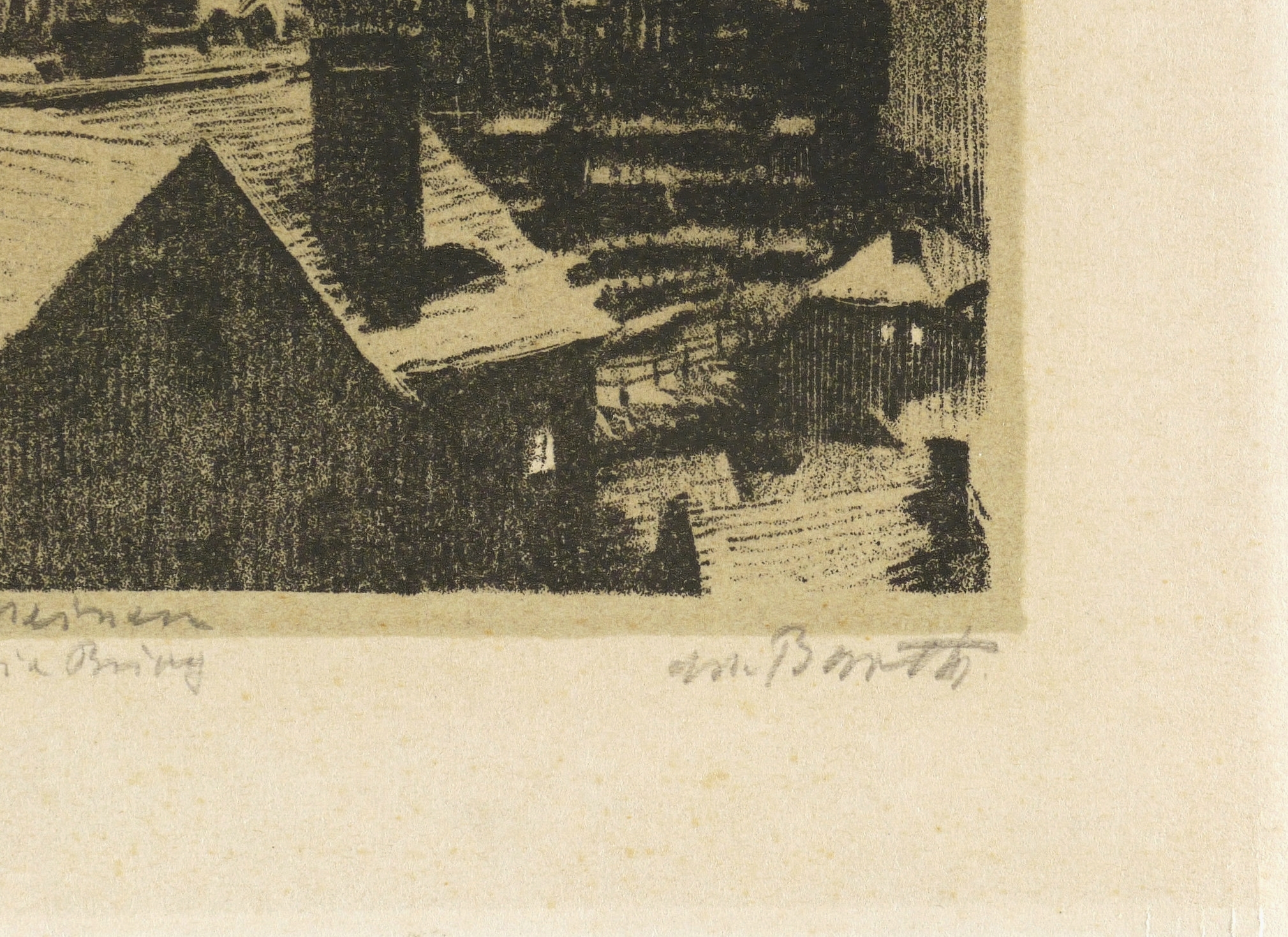 1910-1920. Lithografie / Kreidelithografie, in Schwarz, über grauer Tonplatte, auf leichtem Velin. – Originale Künstlergrafik, von Arthur Julius Barth. – 11,4 x 9,2 cm (Darstellung / Tonplatte), 16 x 14 cm (Blatt).