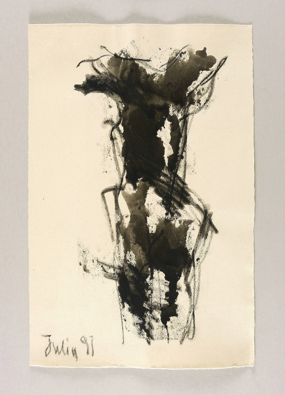 1991. Zeichnung / Kreide & Tusche, in Schwarz, auf rauem chamois Bütten. – Originale Künstlergrafik, von Rosemarie Stephan (Julia). – Unikat. – 39,7 x 26,2 cm (Darstellung / Blatt).