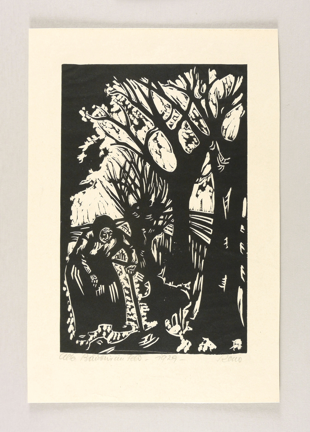 Rechts unten in Bleistift signiert: ″Rocco″. Links bezeichnet und datiert: ″Alte Bäuerin im Feld - 1929″. – Provenienz: Sammlung Erhard Frommhold, Dresden. – Sehr guter Zustand.