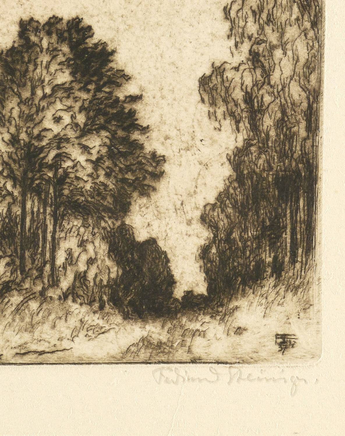 Ferdinand Steiniger (1882 Leipzig - 1959 Dresden-Loschwitz). Oft auch falsch Ferdinand Steininger. Deutscher Maler, Buchkünstler und Grafiker. Schüler von Richard Müller, Oskar Zwintscher und Eugen Bracht an der Dresdener Kunstgewerbeschule und später an der Kunstakademie Dresden. War in Dresden-Loschwitz ansässig. 1938 Sonderausstellung im Badischen Kunstverein von Karlsruhe. Studierte insbesondere die Landschaft seiner unmittelbaren Umgebung, wie z.B. die Dresdner Heide, die in zahlreichen Radierungen thematisiert wurde.