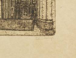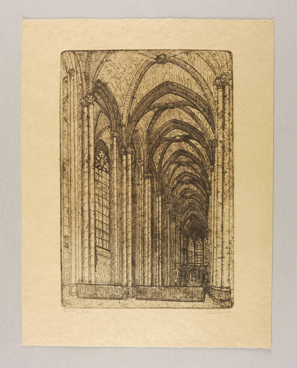 Rechts unten in Bleistift signiert: ″Ferdinand Steiniger.″ Links Titel: ″Im Dom zu Meissen.″ In der Platte links unten Monogramm und Jahr: ″FST 34″. – Sehr guter Zustand.