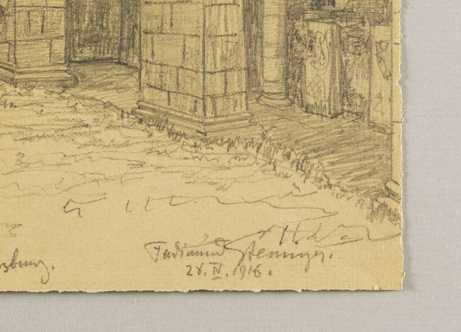 1916. Zeichnung / Bleistift, auf festem gelbem geripptem Bütten. – Originale Künstlergrafik, von Ferdinand Steiniger. – Unikat. – 37,4 x 29,2 cm (Darstellung / Blatt).