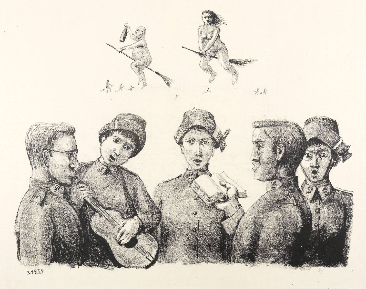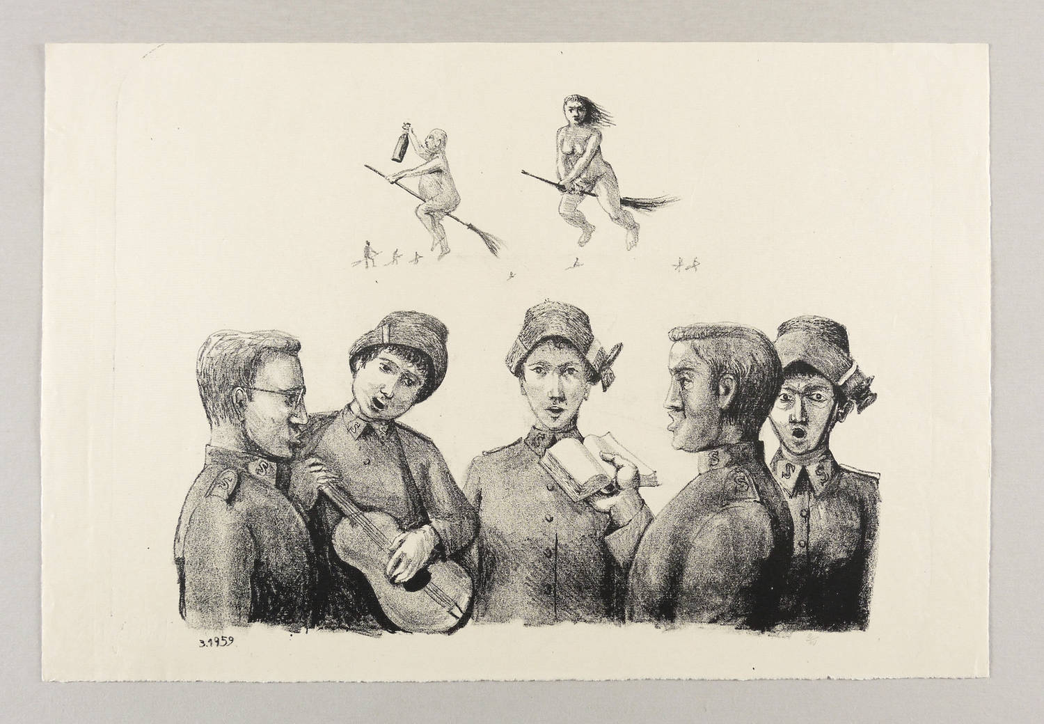 1959. Lithografie / Kreidelithografie, in Schwarz, auf feinem hellchamois Ingres. – Originale Künstlergrafik, von Hans Escher. – Auflage Exemplar Nr. 2/10. – 27,5 x 36,2 cm (Darstellung / Druckbild), 33 x 49 cm (Blatt).