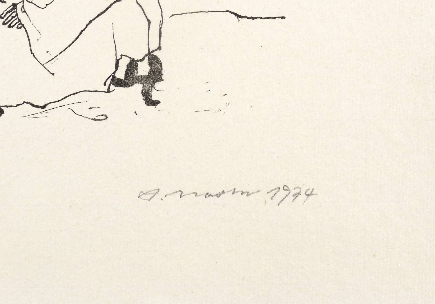 1974. Lithografie / Pinsellithografie, in Schwarz, auf hellgetöntem Hahnemühle. – Originale Künstlergrafik, von Arno Mohr. – 16,7 x 27,7 cm (Darstellung / Druckbild), 30 x 42 cm (Blatt).