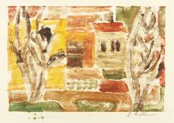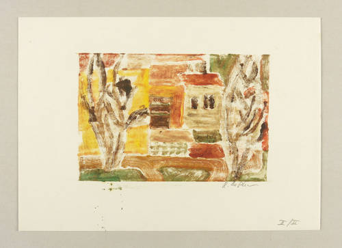 Um 1980. Farbmonotypie, in 7 Farben, auf hellchamois Velin. – Originale Künstlergrafik, von Rosemarie Stephan (Julia). – Unikat. – 21 x 30 cm (Blatt), 12,5 x 18,7 cm (Darstellung / Druckbild).