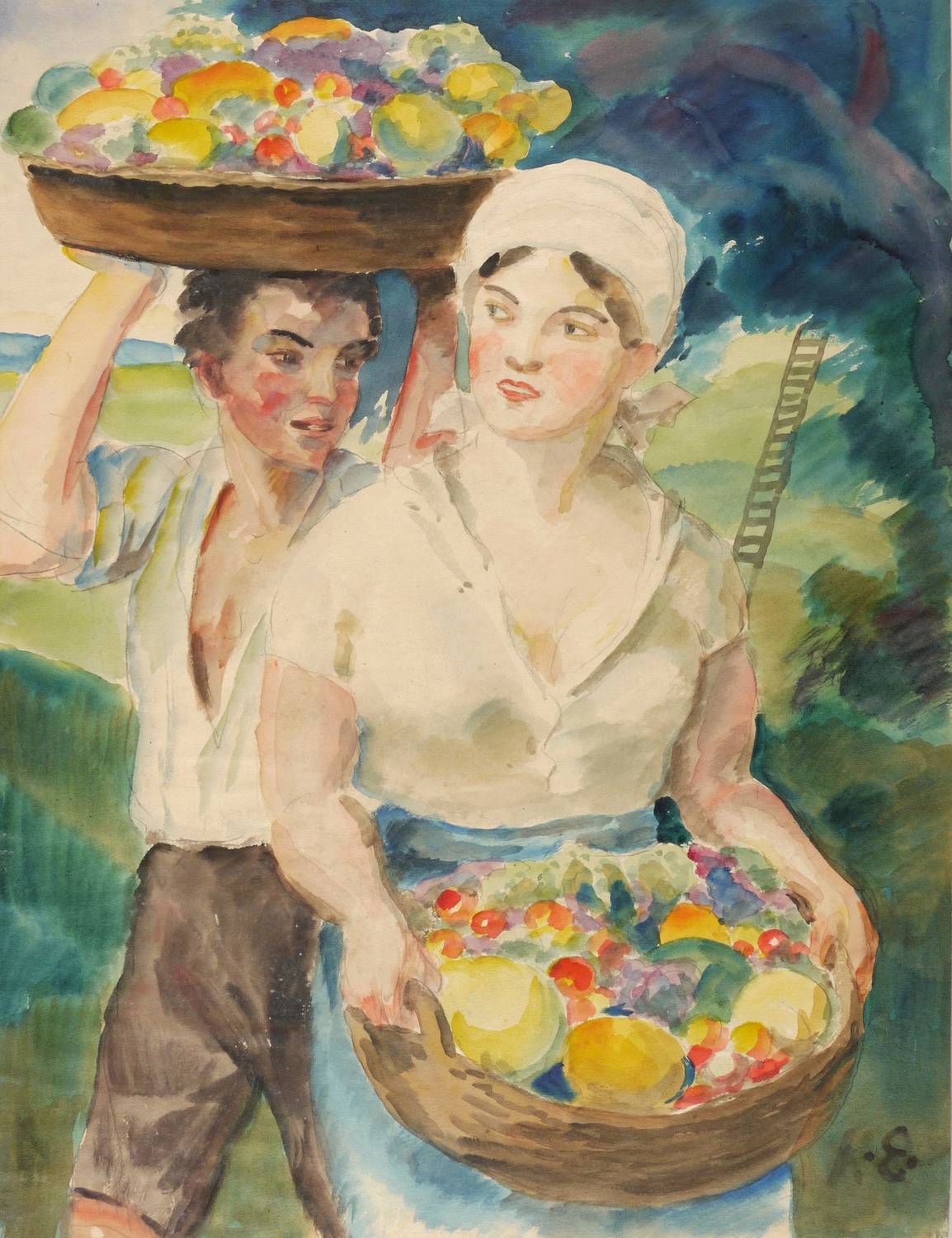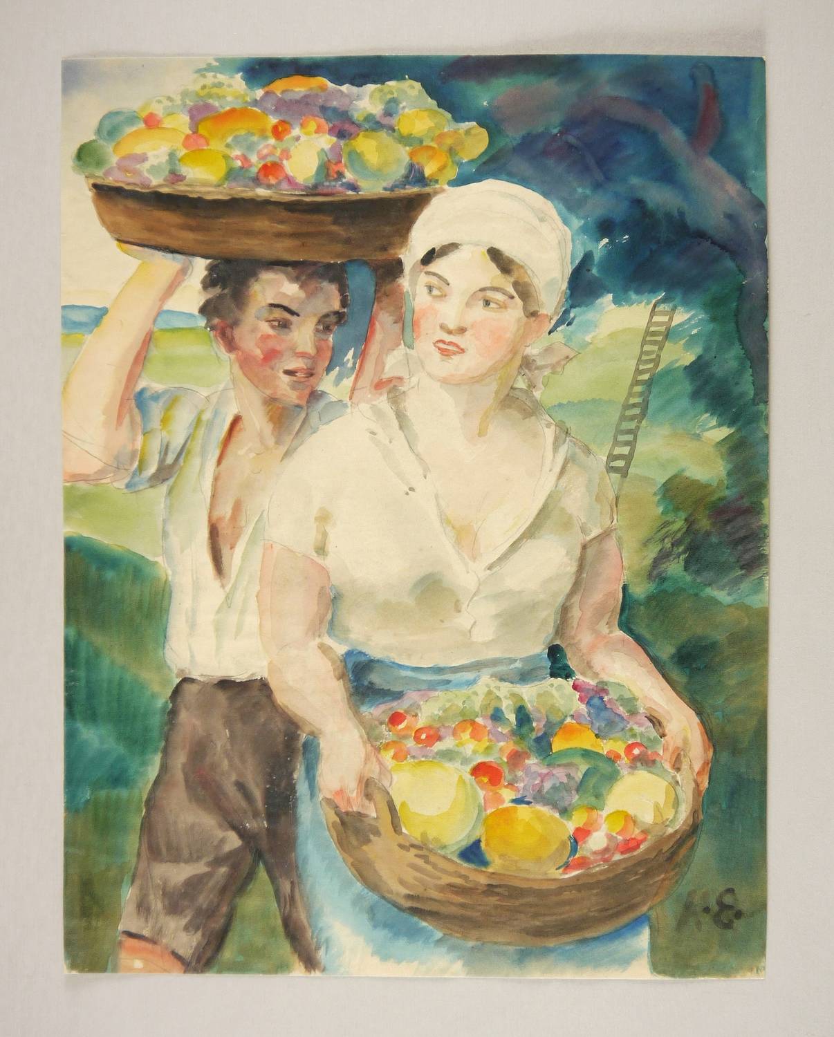 1945-1950. Aquarell, auf hellgelbem Velinkarton. – Originale Künstlergrafik, von Karl Enderlein. – Unikat. – 42,0 x 32,0 cm (Darstellung / Blatt).