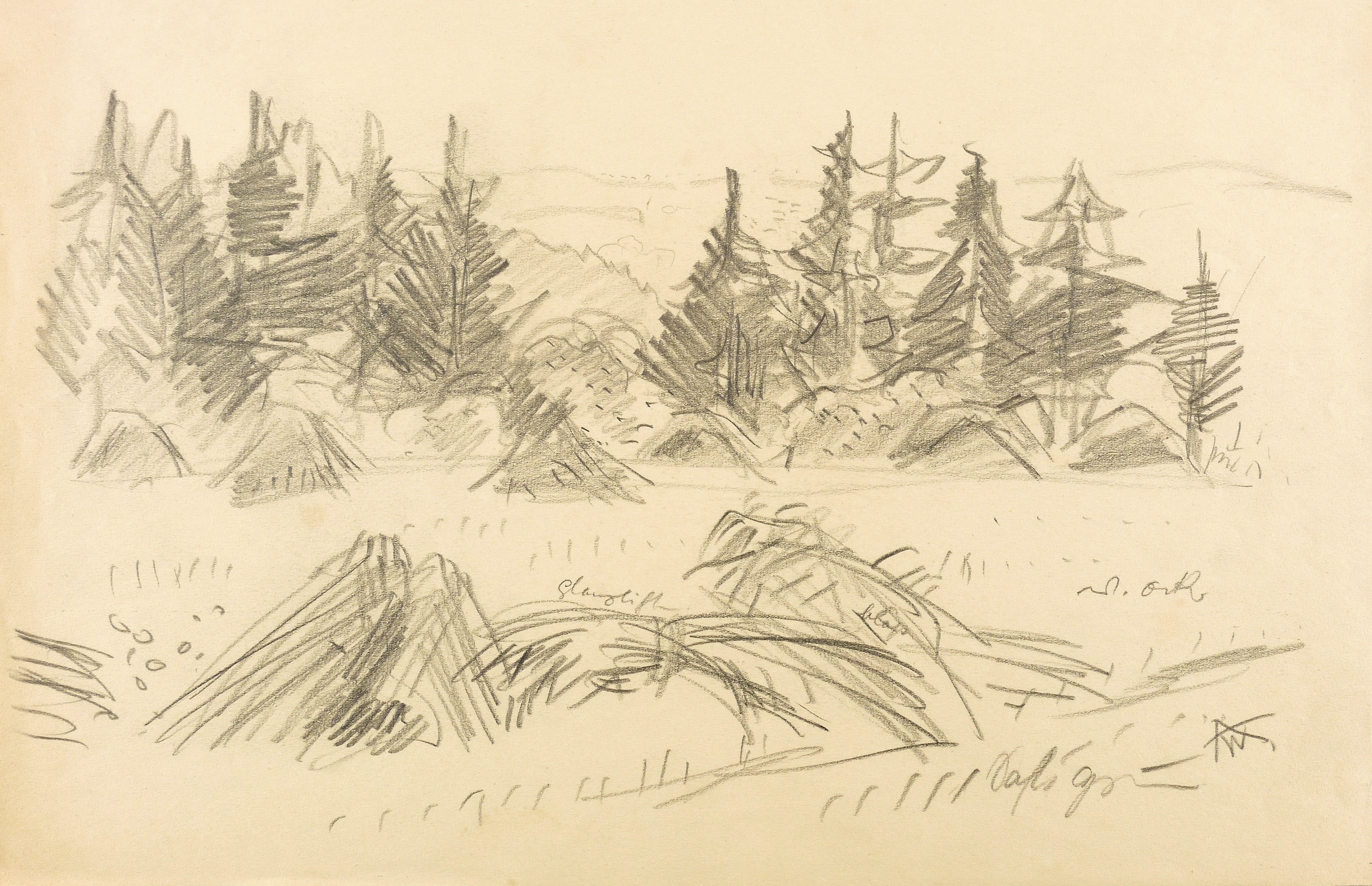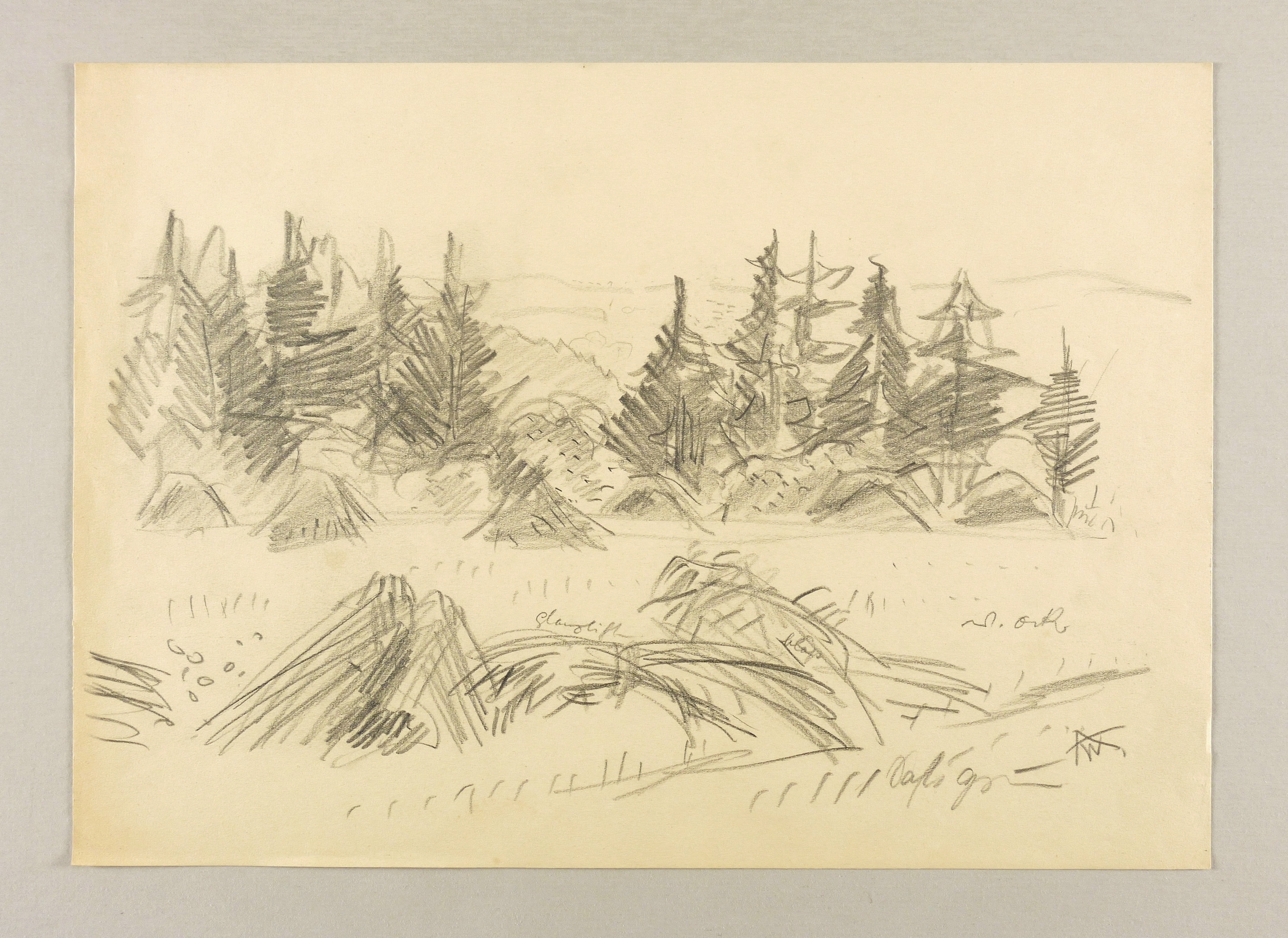 Rechts unten in Graphit mit Monogramm signiert: ″AW.″ In der Darstellung diverse Farbnotizen. – Papier altersbedingt leicht gegilbt. Noch sehr guter Zustand.