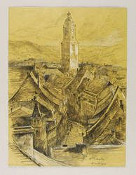 Um 1925. Zeichnung / Kreidezeichnung, in Schwarz, weiß gehöht, auf gelblich-braunem Karton. – Originale Künstlergrafik, von Felix Skoda. – Unikat. – 32,3 x 24,0 cm (Darstellung / Blatt).